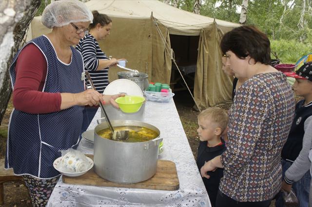 После насыщенных игр и развлечений питательные завтраки, обеды и ужины на свежем воздухе разлетались мгновенно. Вкусные борщи, супы, каши, салаты готовила повар Н.Н. Пундик, во всех хозяйственных делах ей помогал Р.А. Вдовенко.