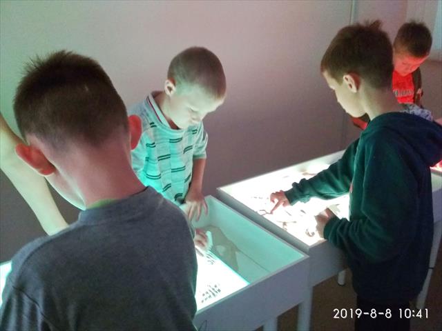 В первом отделении имеются два стола для песочной анимации, предназначенные для индивидуальной работы с детьми. Во втором отделении установлены три детских световых стола и стол педагога, имеется камера, проектор и проекционный экран. В планах - не только рисовать, но и создавать видеоролики в стиле песочной анимации.