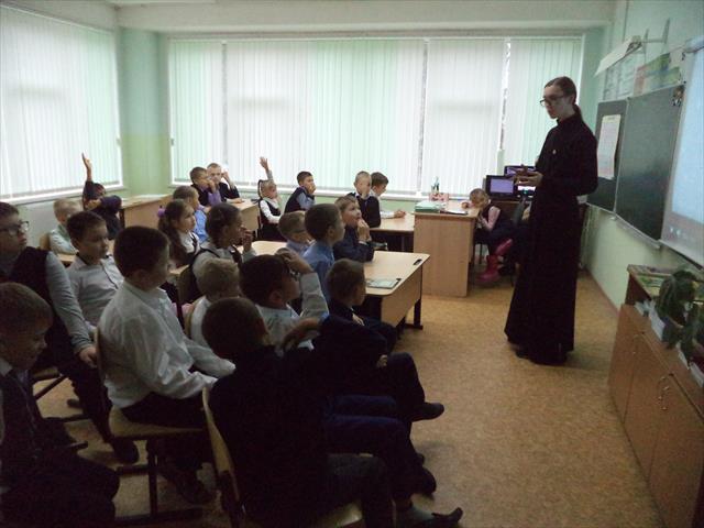 Вместе с библиотекарем к ученикам Чебоксарской НОШ для обучающихся с ОВЗ №1 пришла Светлана Павлова – педагог Воскресной школы при Храме в честь Рождества Пророка, Предтечи и Крестителя Господня Иоанна, а также алтарник Храма Владислав Болушевский.