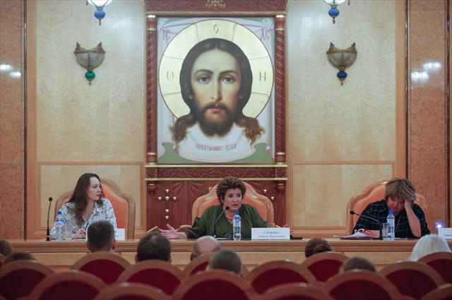 Круглый стол вела исполнительный директор Координационного комитета по поддержке социальных, образовательных, информационных, культурных и иных инициатив под эгидой Русской Православной Церкви, член Совета Федерации Л.Н. Глебова.
