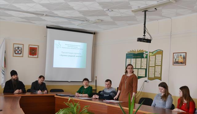 В ходе заседания, руководитель проекта А.В. Банкрутенко, канд. с.-х. наук, доцент, провел презентацию проекта «Храмы родной земли», озвучил основные цели и задачи работы. Е.В. Юдина, канд. экон. наук, доцент, рассказала о плане работы кружка «К истокам духовности» в период реализации гранта.