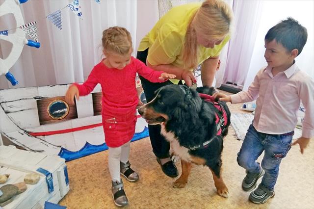 — В этом году удалось стать победителем в конкурсе малых грантов «Православная инициатива» с проектом «Мой друг – четыре лапы с хвостиком» и получить финансовую поддержку Фонда гуманитарных и просветительских инициатив «Соработничество». Благодаря этому мы смогли организовать на базе центра по работе с населением «Доверие» трехмесячный курс канис-терапии «Мой друг — четыре лапы с хвостиком» для детей с ограниченными возможностями, — рассказывает хабаровчанка. Занятия с четвероногими докторами в рамках проекта проходили дважды в неделю. Мы побывали на заключительном- музыкальном спектакле «Библейские истории», том самом, где ребята с нетерпением ждали окончания концерта, чтобы поиграть с хвостатыми. На первый взгляд, кажется ничего особенного: дети берут пса за поводок, ходят с ним по периметру зала, дают команды: «Рядом», «Вперед», «Лежать». На самом деле, за простыми движениям скрывается огромная работа.