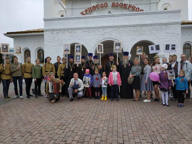 9 мая 2019 года ребята и взрослые из православной военно-патриотической группы" Форпост", Школы актива " Навигатор", православного молодежного движения " Ковчег" ( храм в честь Преображения Господня, Бежица) и дошкольного объединения " Зернышки" прошли по маршруту " Бессмертного полка " с портретами родных героев-ветеранов и песнями военных лет.