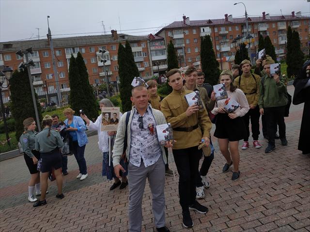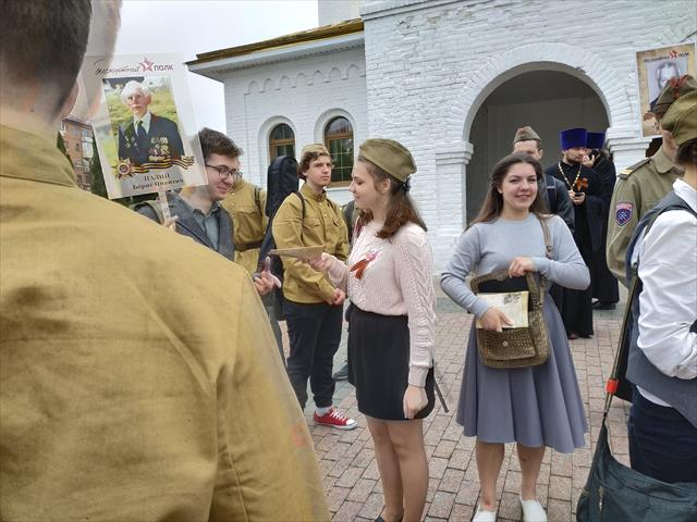 Шествие началось от Кафедрального собора. В строю «Бессмертного полка» ребята шли рядом с митрополитом Брянским и Севским Александром и брянскими священниками.