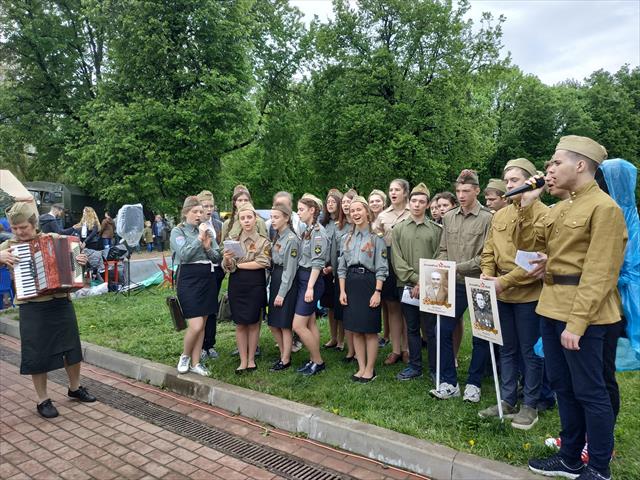 Слушателей, включившихся в концерт , было много: за день мы раздали около 150 песенников. Завершился концерт " Майским вальсом " , который ребята танцевали в военной форме , приобретенной за счет гранта.