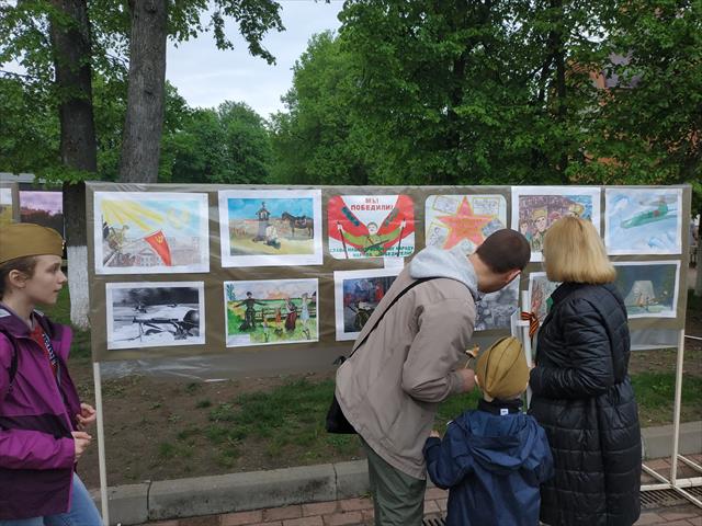 Выставка рисунков весь день собирала зрителей, больших и маленьких . Награждение победителей состоится на заключительном праздничном концерте "Наследники Победы", который состоится 26 мая 2019 года.