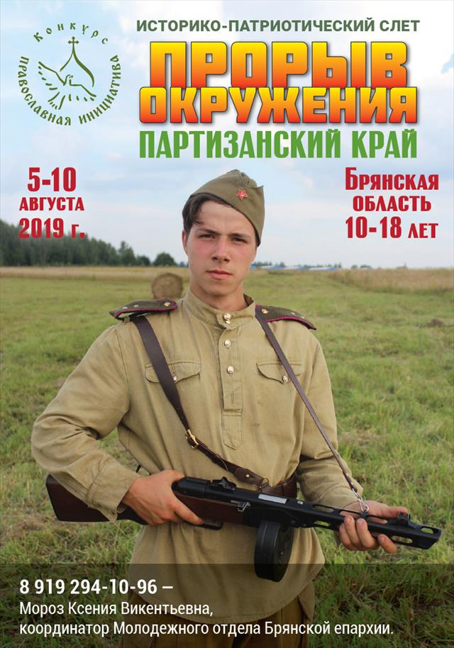 5-10 августа в с. Страшевичи Брянской области состоится историко-патриотический слет «Прорыв окружения -2019». Партизанский край». К участию приглашаются юноши 10-18 лет.