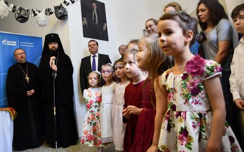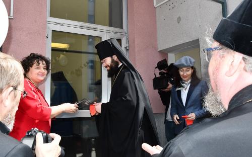 Затем Архиепископ Венский и Будапештский Антоний, руководитель Управления Московской Патриархии по зарубежным учреждениям, и председатель общества S.V. Rachmaninov – Musicum, ставшего учредителем школы, Татьяна Щерба, перерезали ленточку у входа, после чего Архиепископ Антоний совершил краткий чин освящения школы, завершившийся радостным пением пасхального тропаря «Христос Воскресе».