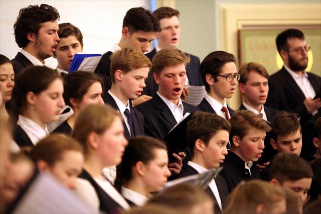 «24 апреля в Соборной Палате состоялся замечательный концерт детских хоров православных школ, который собрал сводный хор в 300 голосов. Как обычно основными участниками были хоры двух московских школ: Свято-Петровской и Свято-Димитриевской. Гостем фестиваля стал мужской хор Варницкой гимназии из Ростова Великого – лауреат нескольких хоровых фестивалей и конкурсов. Выступление гостей стало подарком и украшением концерта.