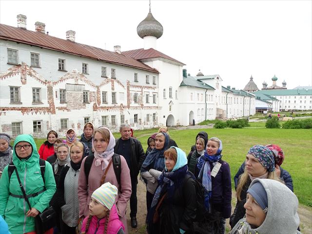 Экскурсанты познакомилась с монастырем с точки зрения его исторического значения, узнали о его сложном советском прошлом, в то время на острове был лагерь и тюрьма, православная же экскурсия знакомила с историей монастырской жизни островов, паломничеством.