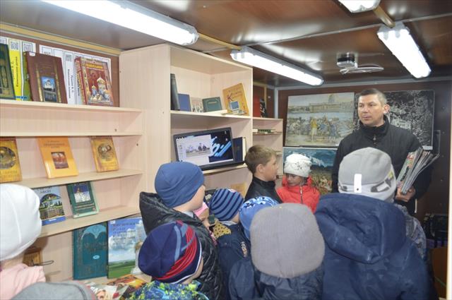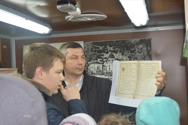 Посетителям библиомобиля была предложена выставка из последних книжных поступлений на тему 1155-летия возникновения славянской письменности. Впечатления, полученные от знакомства с изданиями, были дополнены просмотром тематических видеосюжетов, участием в викторине, просмотром презентации.