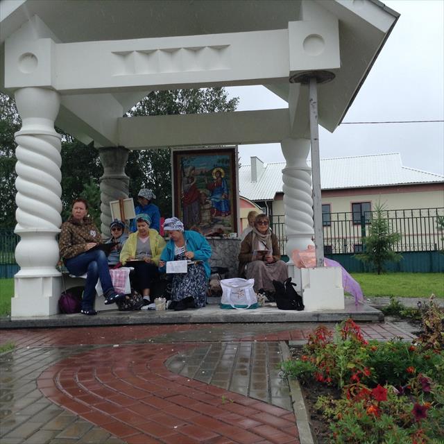 Территория монастыря очень ухожена: имеются дорожки, газоны, горки, скамейки, беседки и цветники. Поэтому, несмотря на дождливую погоду, мы нашли удобные места для пленэра. Практически с любой точки территории открывался прекрасный вид на храмы и часовни. Дождь создавал прекрасную атмосферу, в воде на дорожках отражались строения монастыря, капли дождя украшали деревья и цветы, зелень радовала яркостью. Все было наполнено особыми красками и звуками, чистотой и свежестью.