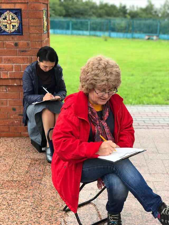 Приведём слова из интервью с участниками проекта. На вопрос о том, как вы оцениваете экстремальные погодные условия, руководитель пленэра Ирина Меженкова ответила: «Художники рады всегда выйти на пленэр, потому что это сейчас такая редкость, из-за того, что и некогда и какие-то обстоятельства всегда мешают, а здесь у нас и коллектив собрался и всё сложилось. Ну а погодные условия? … У всех хорошее настроение, всё хорошо, никто не капризничает… Иногда слишком солнечный день это тоже не совсем хорошо, потому что цветовые градации очень сложно уловить, тем более, что у нас не все профессиональные художники и тяжеловато на солнце, и физически тяжеловато. Сейчас, конечно, не самые лучшие погодные условия, но зато свежая зелень, чистый воздух, в принципе думаю, что этюды получатся хорошие, сделаем картины, большие форматы потом возьмем метр на метр и сделаем каждый по картине…».