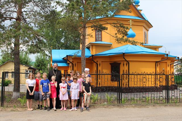 Настоятель Покровского храма протоиерей Александр Чурсин подробно рассказал детям об истории возникновения храма, его архитектуре, о том, что Покровскому храму исполнилось 102 года и это единственный деревянный храм, сохранившийся в городе Ишиме с дореволюционных времен.