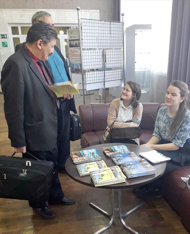 У первых посетителей фотовыставки была уникальная возможность получить в подарок путеводители о храмах Забайкалья.