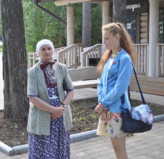 Когда проезжали знаменитые Красноярские столбы, выяснилось: одна из экскурсанток, 91-летняя Надежда Дмитриевна Моткевия, в молодости была столбисткой и рассказала о шуточном посвящении в столбисты, которое довелось пройти и ей.