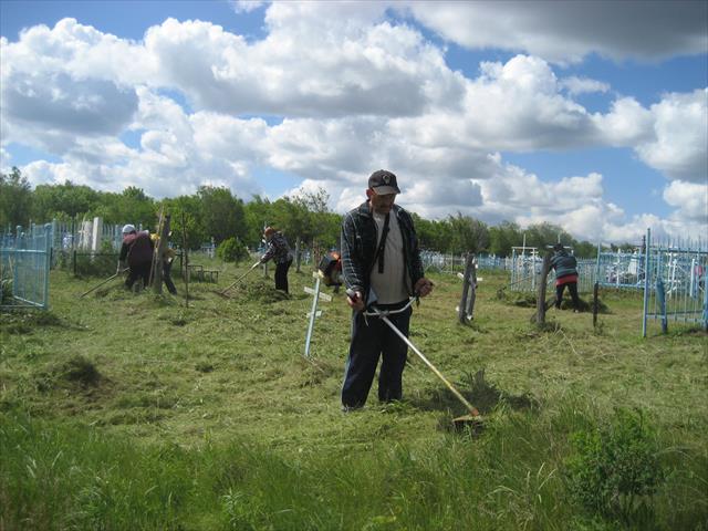 Уборка на кладбище стало своим делом для семьи Натальи Глотовой, неравнодушных семей Горловых, Воротынцевых, Решетовых и др. Отрадно, что в таком благом деле принимает участие молодежь. Юрий Глотов на своем Камазе вывозил мусор и скошенную траву, а его брат Максим Леус сгребал и носил огромные охапки травы. Братья Евгений и Роман Горловы без устали косили на заросших могилах.