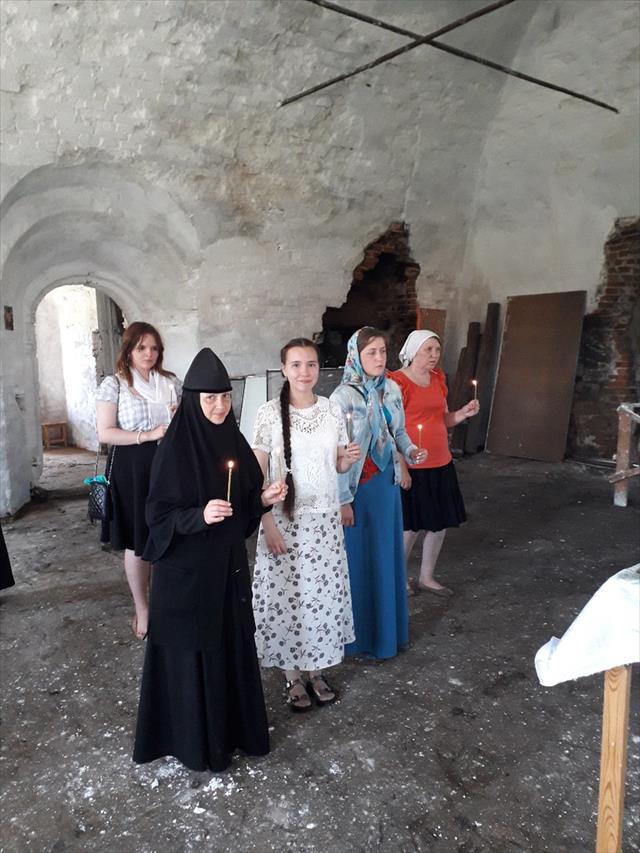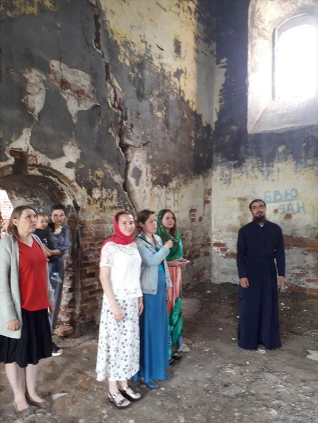 За два дня паломничества удалось побывать и кратко вознести молитвы в бывшем селе Монастырское, в полуразрушенной церкви Успения Божией Матери, а также в селе Знаменка в церкви иконы Божией Матери "Знамение". Церковь "Успенская", к сожалению, продолжает разрушаться. Поэтому участники поездки с батюшкой пропели молитву Богородице в церкви и сразу вышли. Возле церкви построена часовня, а также отведена земля для устройства церковной жизни. Будем надеяться, что в будущем здесь вновь появится монастырь.