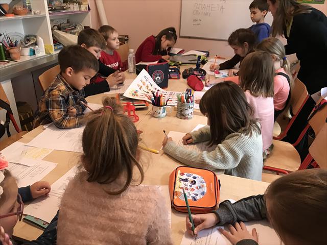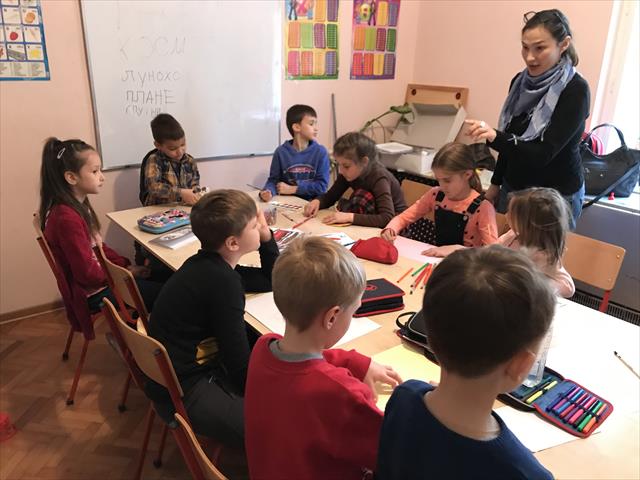 Уроки по русскому языку проходят в дружественной атмосфере. Постоянные вопросы детей не смущают преподавателя и присутствующих ребят, все активно участвуют в обсуждении возникших дилемм. Русские, сербы и билингвы занимались вместе. Темы занятий заинтересовали учеников, дети учили русскую азбуку; 12 апреля собирались в космический поход, в лесу наблюдали за животными, вспомнили о домашних питомцах, узнали названия птиц и насекомых, рассмотрели цепочку развития рыбы, познакомились с обитателями морей, рек и озер.