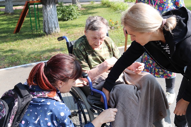 24 августа педагоги Воскресной школы храма Михаила Архангела, вместе с представителями из благотворительного фонда «Старость в радость» посетили палаты дома ветеранов, в которых проживают тяжелобольные люди. Цель этого посещения заключалась в том, чтобы вывезти неходячих людей на улицу.