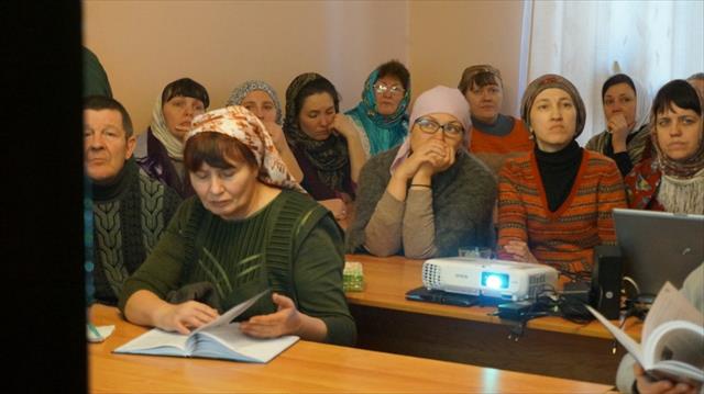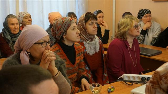 Сестры обители организовали в воскресной школе монастыря встречу с авторами уникального издания, пока еще малодоступного широкому кругу читателей. Познакомиться с содержанием новой книги пришли не только учащиеся воскресной школы, но и прихожане, а также преподаватели средней школы гп.Атамановка.