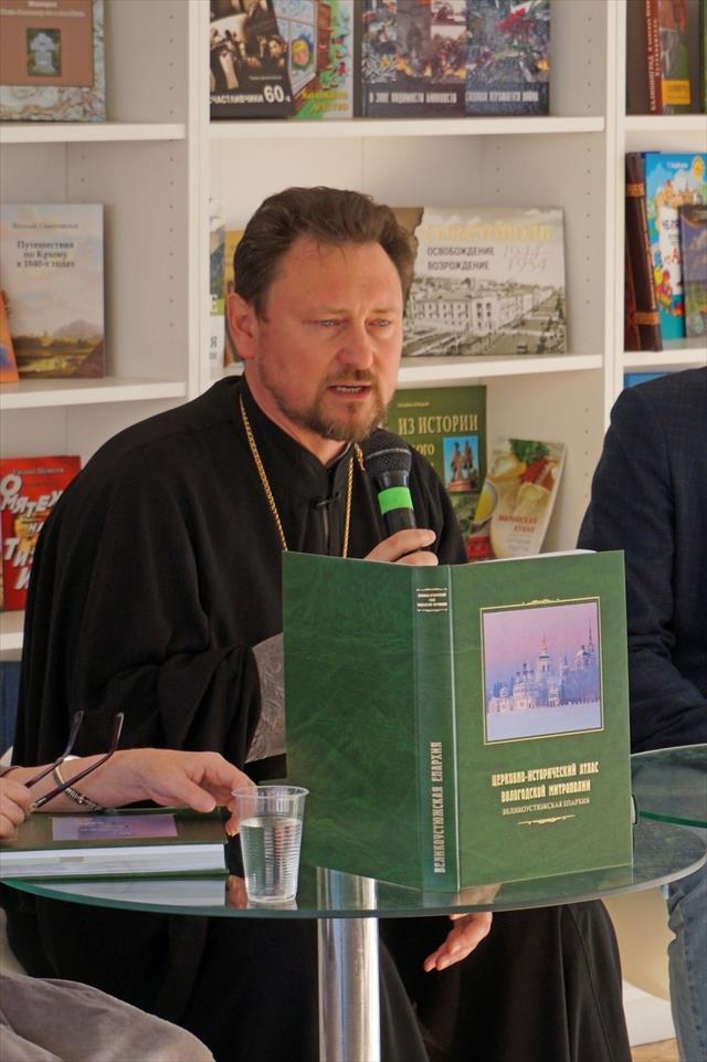 Перед собравшимися выступили представители авторского коллектива книги: руководитель проекта протоиерей Алексей Сорокин, руководитель отдела Вологодской епархии по взаимоотношениям Церкви и общества, директор издательства «Древности Севера» Марина Викторовна Васильева и заместитель директора Александр Валерьевич Суворов.