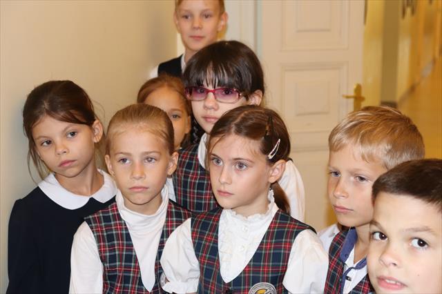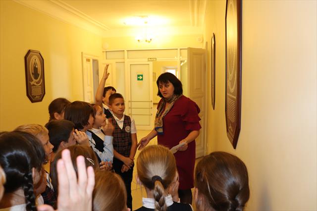 Занятие прошло в коридоре гимназии, оформленном стендами с изображениями и биографическими сведениями об астраханских священнослужителях.
