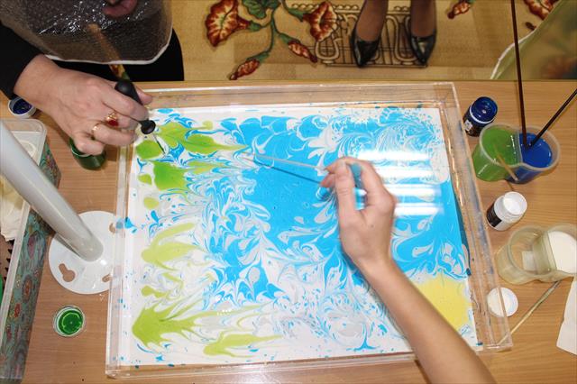 Затем команды приступили к созданию мультфильмов с помощью песочной техники и техники рисования на воде "Эбру".