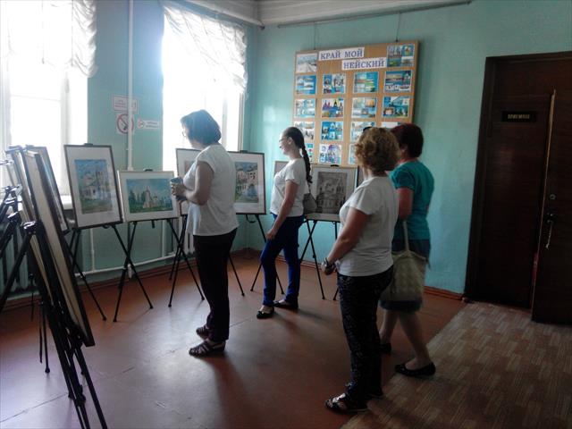 Гости и жители города в тени деревьев с удовольствием рассматривали картины юных художников, педагогов ДШИ и приглашенных мастеров. Выставка получила огромное количество отзывов, как устных, так и записанных в нашей книге. В этот же день на празднике Дня города были вручены дипломы и памятные призы участникам выставки - победителям в творческом конкурсе проекта "Православная Нея в карандшах и красках". Всего на конкурс были представлены 47 работ (живопись, графика, ДПИ). Объектами художественного творчества стали уникальные уголки Нейского района (храмы, каменные строения прошлого, природные объекты) и православные праздники и традиции.