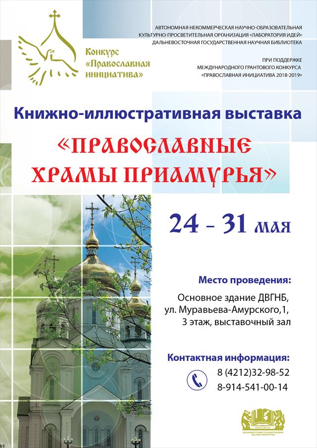 24 мая 2019 года в выставочном зале Дальневосточной государственной научной библиотеки открылась книжно-иллюстративная выставка «Православные храмы Приамурья».