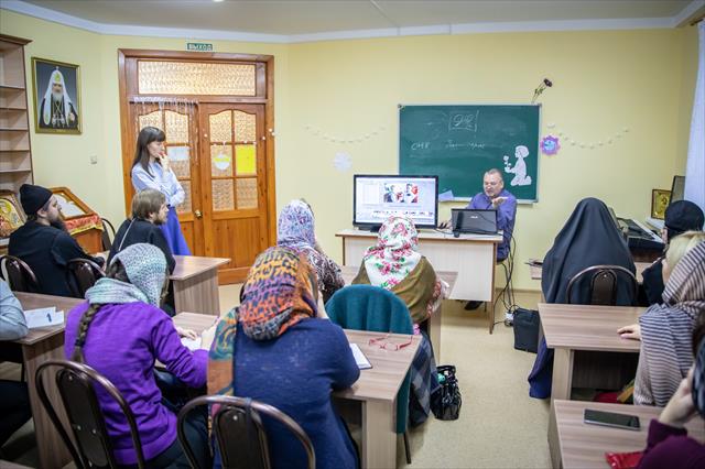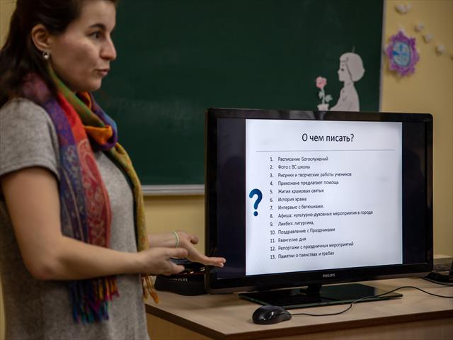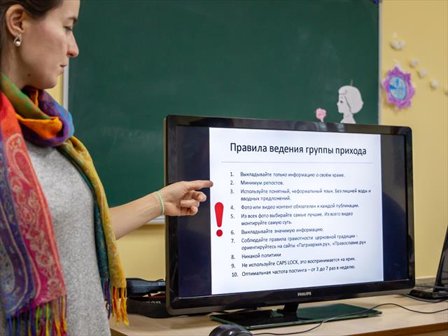 В этот раз занятие было посвящено ведению страниц храмов в социальных сетях, а также основам видеосъемки и монтажа.
