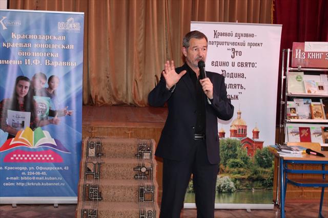 22 ноября в зале Динского механико-технологического техникума состоялась третья ноябрьская встреча проекта Краснодарской краевой юношеской библиотеки имени И.Ф. Вараввы «Это едино и свято: Родина, память, язык», получающего поддержку министерства культуры Краснодарского края и международного грантового конкурса «Православная инициатива 2017-2018».