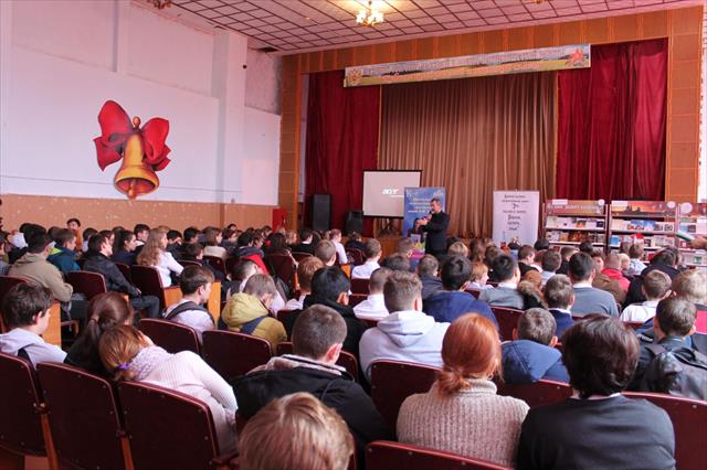Собеседником динского студенчества выступил писатель, член Союза писателей России, лауреат премии «Имперская культура», канд. филол. наук А.И. Смоленцев. Участники встречи пытались решить вопрос о поиске смысла жизни. Жизни не абстрактной, а конкретного молодого человека – каждого из сидящих в зале. В этом помог ребятам писатель Иван Бунин и его рассказ «Бернар», завершающийся словами: «Бог каждому из нас вместе с жизнью дает тот или иной талант и возлагает на нас священную обязанность не зарывать его в землю».