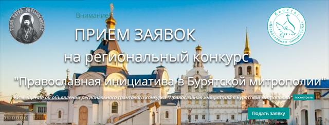 Координационный комитет по поощрению социальных, образовательных, информационных и иных инициатив под эгидой Русской Православной Церкви совместно с Бурятской митрополией и правительством Республики Бурятия объявляют региональный грантовый конкурс «Православная инициатива в Бурятской митрополии», который стартовал 29 июня 2018 года. Прием заявок осуществляется на сайте www.newpravkonkurs.ru.