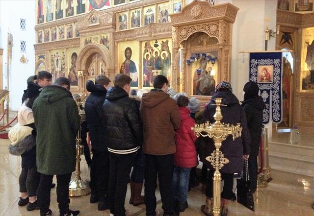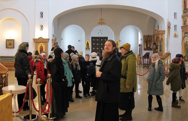 Знакомство с обителью началось с посещения Троицкого храма. Здесь матушка познакомила гостей с историей создания и восстановления обители, ее традициями, рассказала о том, как произошло обретение Иверской иконы Богоматери и перенесение её списка из Афона в Ростов-на-Дону. Дети узнали о монастырской жизни, о том какие послушания несут насельницы монастыря, познакомились с историей строительства Троицкого храма, с тем, сколько в нём престолов, и как устроен иконостас. Затем школьники побывали в храме в честь Иверской иконы Божией Матери, где ребята смогли поставить свечи, и задать отцу Виктору возникшие у них вопросы. Завершилась экскурсия у святого источника, где её участники смогли умыться и напиться святой воды.