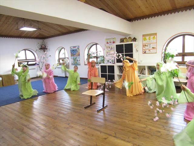 Примерили на Стефана - исполнителя роли «Город»- велика! Что делать? Время поджимает. Выручила наша помощница пенсионерка- доброволец Галина Ивановна. Аккуратно сняла золотую ткань с фетры и перенесла на основу поменьше. Убор головной для города получился просто загляденье. Стефан (десятиклассник) в своем костюме просто преображается!