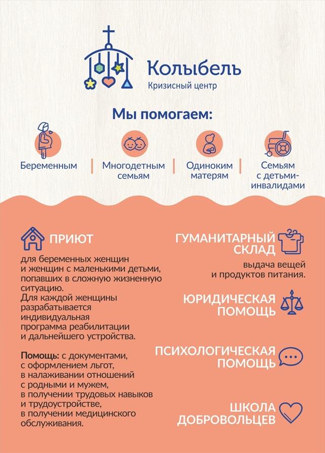 - открыть Кризисный центр "Колыбель", включающий в себя: консультационное отделение (амбулаторию) с "Телефоном доверия", юридической и психотерапевтической службой;