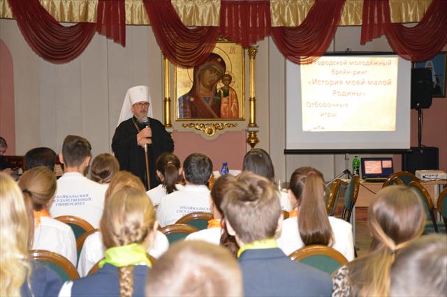 О забайкальских первопроходцах, первых острогах в крае, великих людях Забайкалья, воинах XX века и роли в них забайкальцев, Забайкальском фронте ВОВ 1945 г. узнали и поделились друг с другом участники IV молодежного брейн –ринга «История моей малой Родины», прошедшего 15 ноября в Казанском кафедральном соборе Читы.