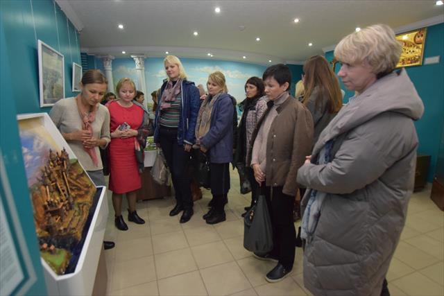 Экскурсовод Татьяна Павлова продемонстрировала участникам семинара тактильную экспозицию музея, адаптированную для незрячих посетителей.