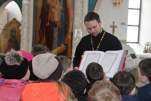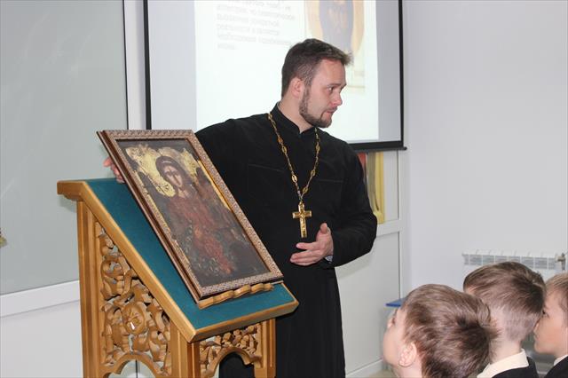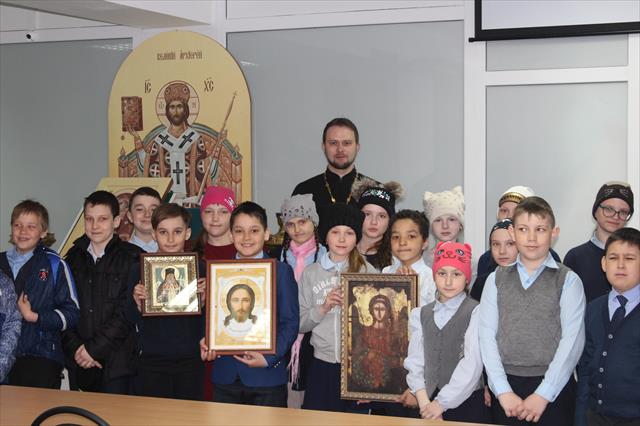 На этот раз иерей Михаил Мелешкин рассказывал детям об убранстве православного храма, а также о видах архитектурного разнообразия русского храмостроительства. В классе огласительных бесед ребята узнали об искусстве православной иконописи и символах иконографии, а также задавали много интересных вопросов.