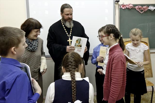 На таком уроке 25 декабря побывали гости из Успенского прихода — настоятель прихода протоиерей Иаков Конкин и педагог Воскресной школы Ирина Викторовна Антонова. И воочию убедились в знаниях учеников по предмету ОПК.
