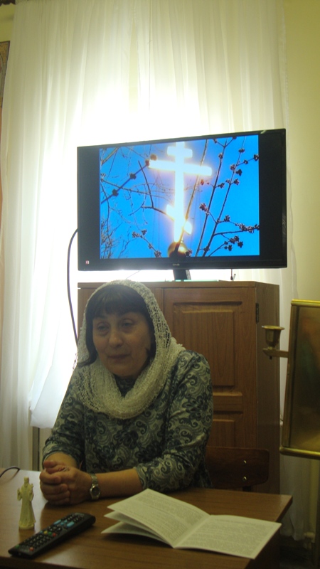 Кудрявская Галина Борисовна, прозаик и поэт, член Омского отделения общероссийской общественной организации «Союз Российских писателей», соавтор книги «Найти твоё земное отраженье…» о соборе Воздвижения Креста Господня, изданной в 2015 году, рассказала о героях книги, сыгравших важную роль в истории собора. Галина Борисовна зачитывала фрагменты книги, показывала фотографии, отвечала на вопросы слушателей.