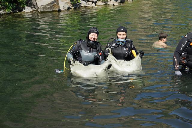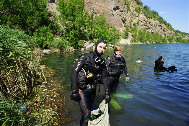 Дайверы - активисты экологического движения, которые прошли обучение в клубе "Океан", собирали мусор под водой более двадцати мешков стеклянных и пластиковых бутылок. Помимо этого, волонтеры проекта прихожане храма Святых Царственных Страстотерпцев п. Красный Сад с казаками г. Красный Сулин, собрали 50 мешков с мусором, который был вывезен на машине, предоставленной главой администрации города Павлом Грузиновым.