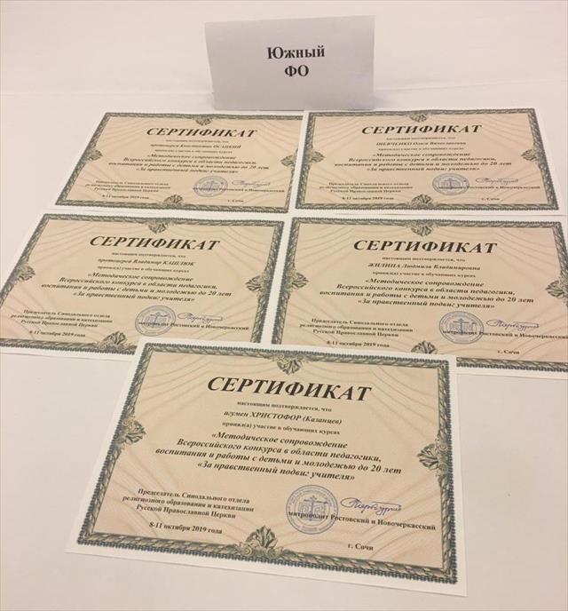 По завершении семинара всем участникам были вручены сертификаты «Методическое сопровождение Всероссийского конкурса в области педагогики, воспитания и работы с детьми и молодёжью до 20 лет «За нравственный подвиг учителя».