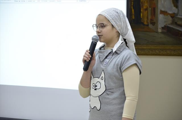 С сообщением о поездке к слушателям и участникам мероприятия обратилась учитель русского языка и литературы МБОУ Лицей №69 Татьяна Горина. Дети – участники поездки прочитали стихи о Царской семье, поделились впечатлениями об уральском паломничестве. Выступления сопровождались показом видеопрезентации о екатеринбургском путешествии.