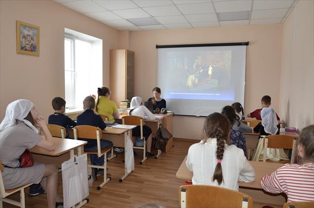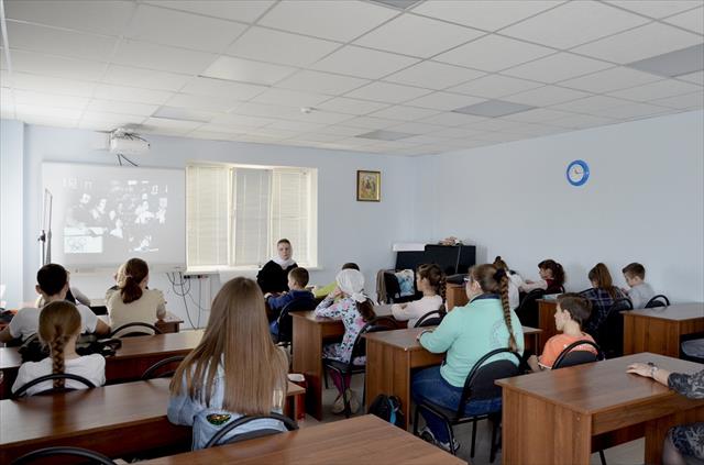 Занятия посетили учащиеся старшей и средней группы, директор воскресной школы Ирина Коваленко. Беседы с детьми провела преподаватель школы Ольга Фатьянова.