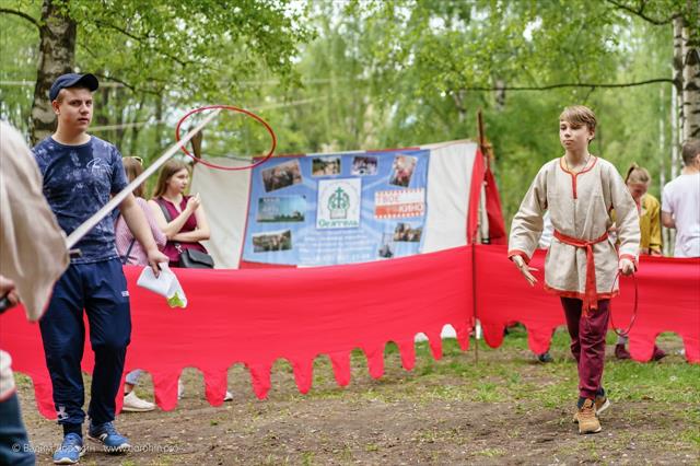 На некоторых площадках дети соревновались между собой, отвечая на вопросы о личности Александра Невского и выполняя задания на ловкость и командную сплоченность.