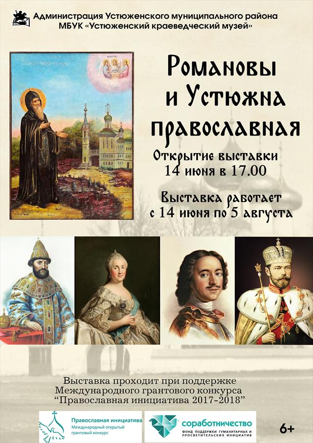 14 июня 2018 года в 17 часов в Устюженском краеведческом музее состоится открытие выставки «Романовы и Устюжна православная…» при поддержке Международного грантового конкурса «Православная инициатива 2017-2018 ».