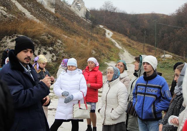 Здесь путешественники помолились за Божественной литургией. После обеда в монастырской трапезной они осмотрели территорию и храмы монастыря, в том числе, пещерный храм в честь Рождества св. Пророка и Предтечи Господня Иоанна. Во время экскурсии, которую провел для гостей сотрудник паломнической службы Иоанн, паломники узнали историю его возникновения и строительства, познакомились со святынями, главной из которых является чудотворная икона Матери Божией Дивногорская (Сицилийская).
