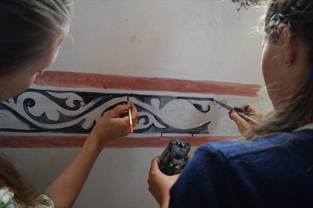 — Этот проект очень актуален для нашего рабочего посёлка, в котором вот уже пять лет ведётся строительство нового храма в честь св. ап. Иоанна Богослова, — рассказывает Александр Алексеевич Медведев, преподаватель ДШИ. — За это время было проведено более 10 благотворительных концертов и ярмарок с участием юных жителей посёлка, средства от которых пошли на строительство церкви. Сегодня начинается внутренняя отделка здания. И в этом процессе примут участие ученики изобразительного отделения нашей школы. Речь идёт о трафаретной росписи храма на уровне полутора метров от пола. Задача профессиональных художников Андрея Куртасова и Антона Чекалина научить своих юных коллег приёмам орнаментной живописи. Задача непростая и интересная одновременно. В июне как раз и состоялись первые мастер-классы. Конечно же, наши ученики возьмут на себя самую доступную для их возраста работу по оформлению стен. Но это будет их ещё одним вкладом в большое и важное дело, которым является строительство храма. И бесценным опытом для самих учеников.
